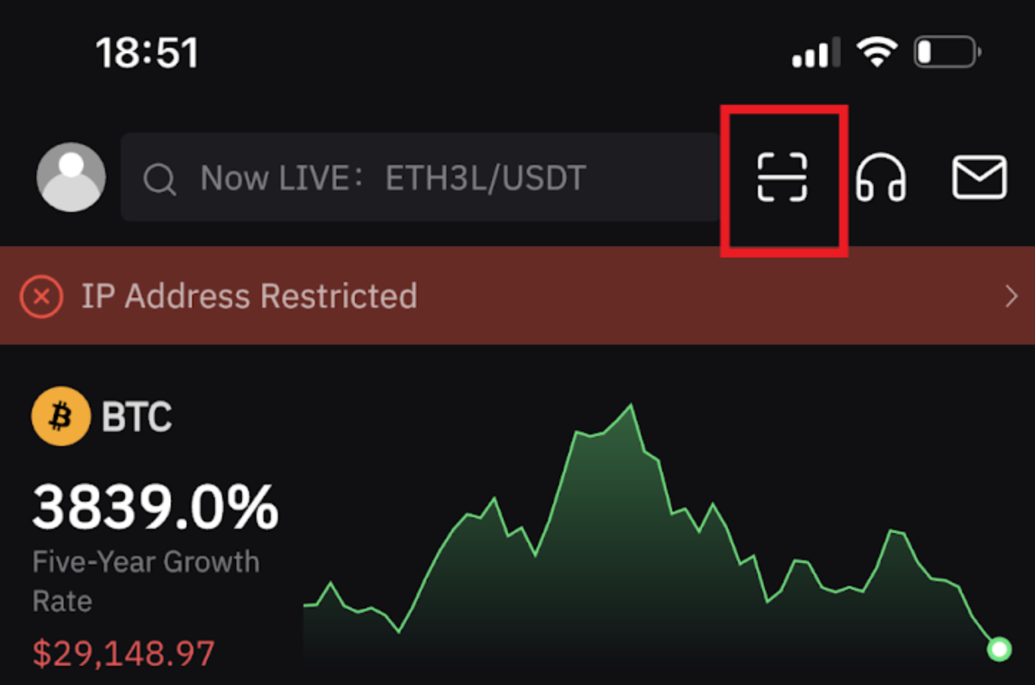 2단계: 바이비트 앱에서 QR코드 스캐너 켜기